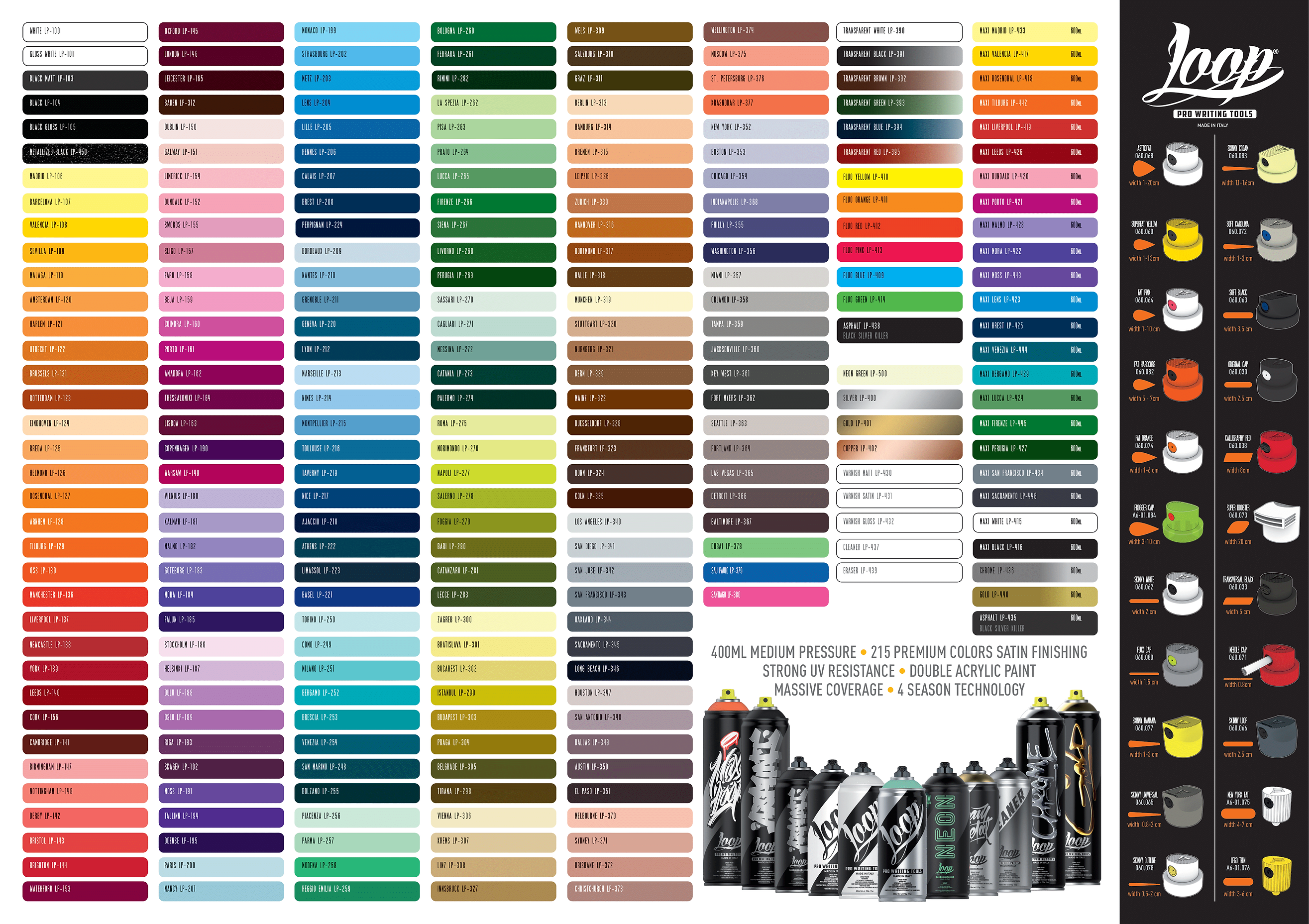 نحن الوكيل الرسمي لعلامة Loop Colors الإيطالية في المملكة العربية السعودية، وهي واحدة من أبرز الشركات المتخصصة في بخاخات الجرافيتي والفنون الحضرية.